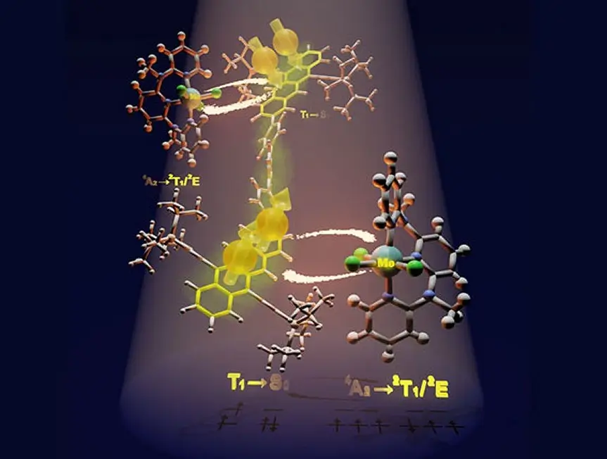 A equipe recorreu a complexos metálicos — moléculas cujas estruturas podem ser projetadas de forma flexível — e descobriu que um emissor de “inversão de spin” à base de molibdênio serve como um coletor ideal.