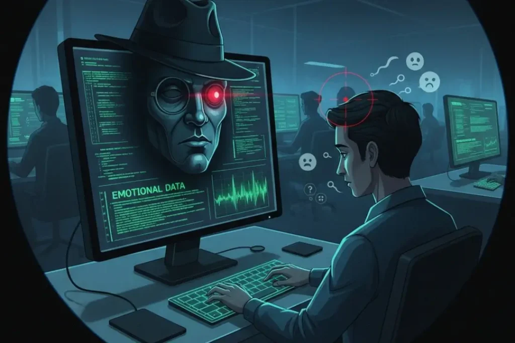 O risco reside no fato de que as emoções, sendo dados profundamente pessoais e íntimos, podem ser coletadas, armazenadas e utilizadas sem o total conhecimento ou consentimento dos usuários.