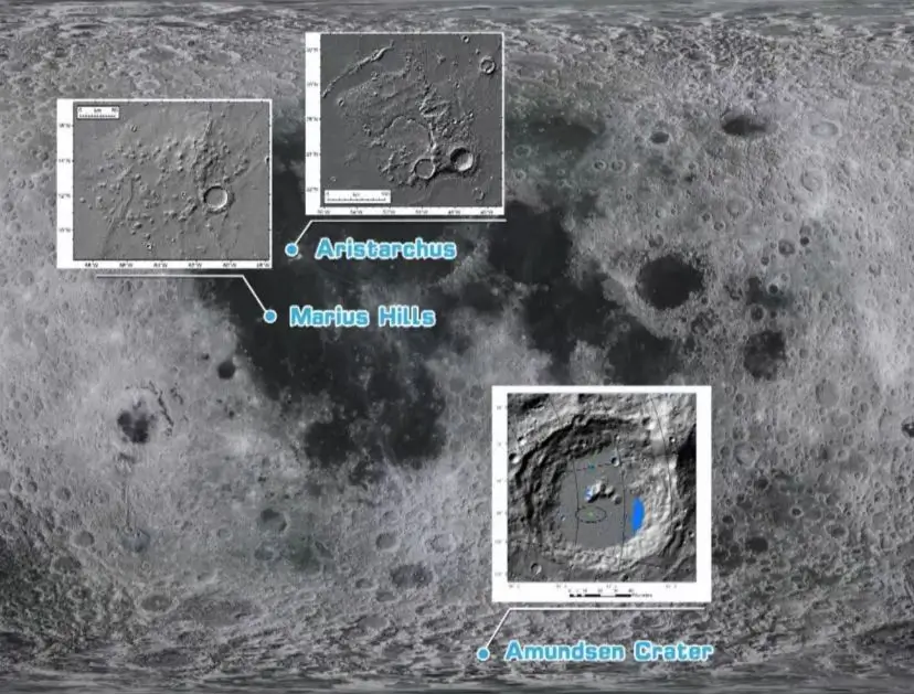 Possíveis destinos mencionados na apresentação foram a cratera Aristarco e as Colinas Marius, no noroeste do lado visível da Lua, e a cratera Amundsen, perto do polo sul.