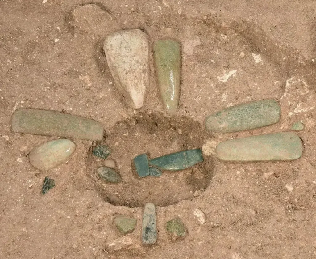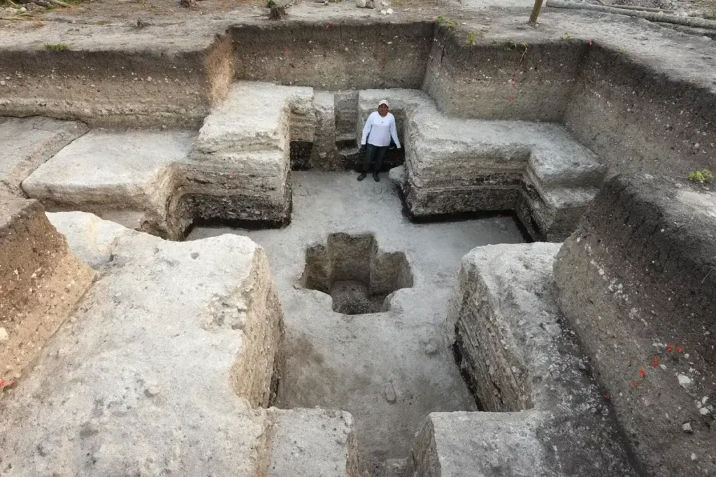 A fossa abrigava ainda esculturas de jade representando um crocodilo, um pássaro e o que os pesquisadores interpretam como uma mulher em trabalho de parto, além de conchas marinhas associadas a água e fertilidade.