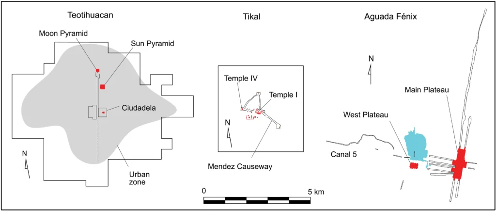 As novas escavações confirmam que Aguada Fénix era muito mais do que um grande aterro. O platô principal, com quase 1,6 quilômetro de comprimento, articula eixos alinhados ao nascer do sol em 17 de outubro e 24 de fevereiro.