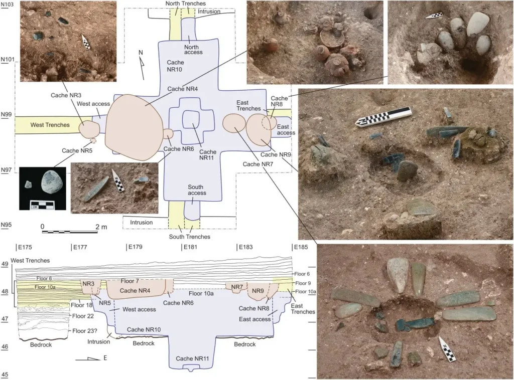 De acordo com nova pesquisa, o desenho do sítio representava como a comunidade concebia o universo. O local apresenta cruzes de tamanhos crescentes com uma cavidade cruciforme no centro, contendo preciosos artefatos rituais.