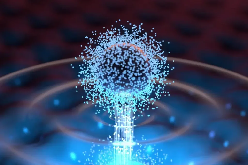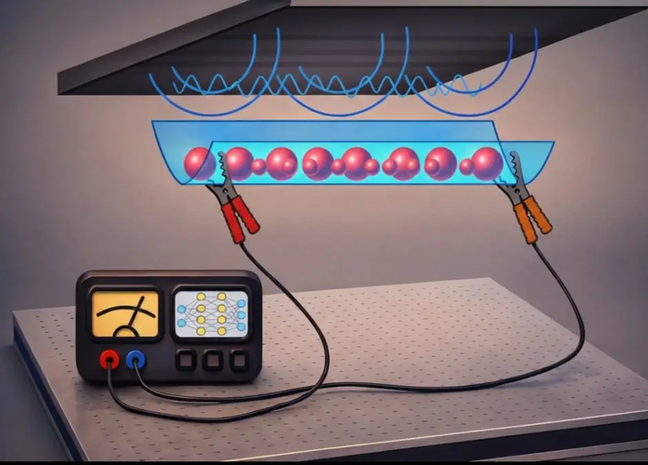 O fio quântico formado pelos átomos aprisionados e levitados revelou um novo tipo de transporte de massa sem resistência . Imagem: Gemini, IA do Google