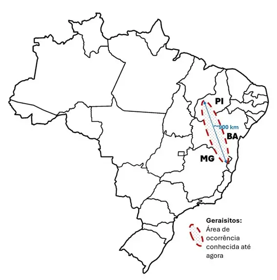 Mas novas ocorrências já foram identificadas também na Bahia e no Piauí, ampliando a área conhecida para mais de 900 quilômetros de extensão longitudinal.