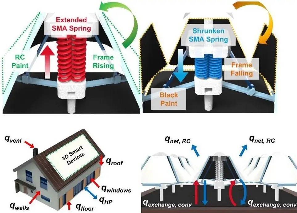 Para isso, em lugar das tradicionais superfícies refletoras, a equipe projetou e construiu um aparelho que abre e fecha automaticamente em resposta aos ângulos da luz solar, permitindo alternar entre aquecimento e resfriamento.