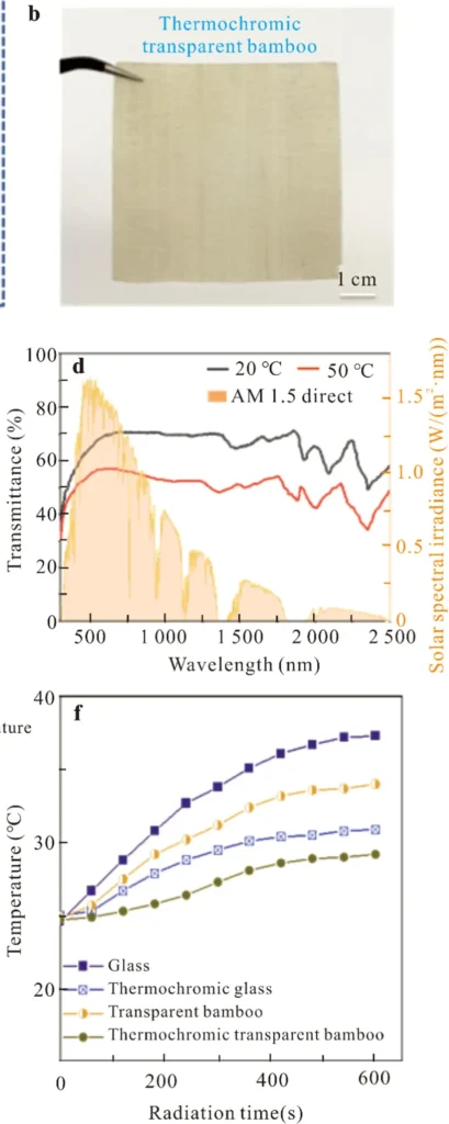 Desempenho de regulação fototérmica do bambu transparente termocrômico. Imagem: Artigo: https://www.sciencedirect.com/science/article/pii/S2369969825000702