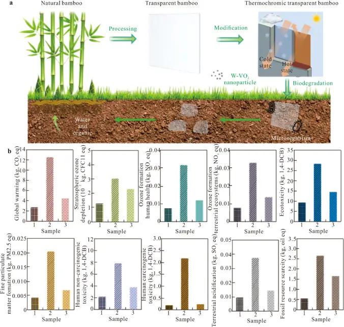 Ao combinar biodegradabilidade, robustez mecânica e controle fototérmico ativo, este compósito transparente de bambu/W-VO₂ oferece uma alternativa sustentável e de alto desempenho ao vidro convencional, apresentando grande potencial para aplicações em edifícios com eficiência energética.
