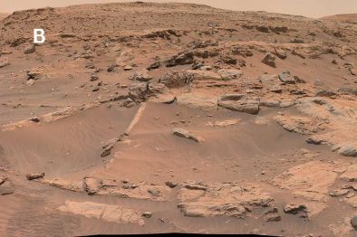 O rover Curiosity observou evidências dessas formações “litificadas” (ou seja, sedimentos que endureceram e se transformaram em pedra) nesse local em diversas ocasiões.