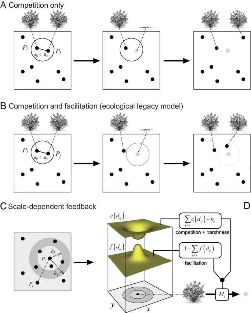 Se estiverem muito próximas umas das outras, as plantas individuais competirão por água, mas se estiverem muito distantes, deixarão espaços para a invasão de outros tipos de plantas; portanto, esse padrão permite o equilíbrio ideal para um ecossistema seco.