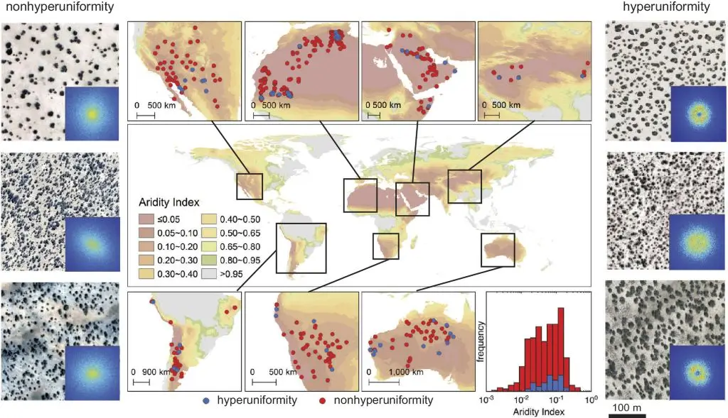 Eles descobriram que, embora a distribuição das plantas possa parecer desordenada no solo, de uma perspectiva aérea, 10% das áreas secas seguem um padrão hiperuniforme — mostrando que o fenômeno não é apenas uma raridade, mas uma característica comum de muitos ecossistemas secos.