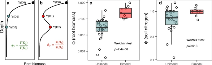 Bimodalidade radicular explicada por fatores de profundidade dentro do local. Imagem: Nature Communications. https://www.nature.com/articles/s41467-025-60055-2#citeas