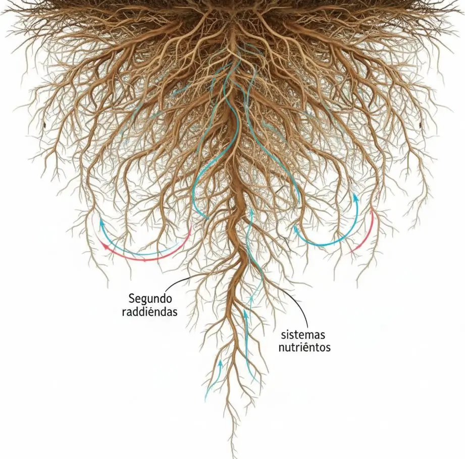 Representação de sistema radicular bi modal. Imagem gerada por IA, Gemini do Google