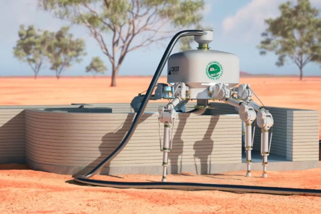 Um robô de construção com pernas de aranha que imprime em 3D
