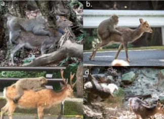 Cooperação Cultural Entre Macaco e Cervo Para Colher Frutos