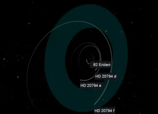 A super Terra HD 20974 d orbita uma estrela do tipo solar com período de 647 dias, uma órbita semelhante à de Marte, onde...