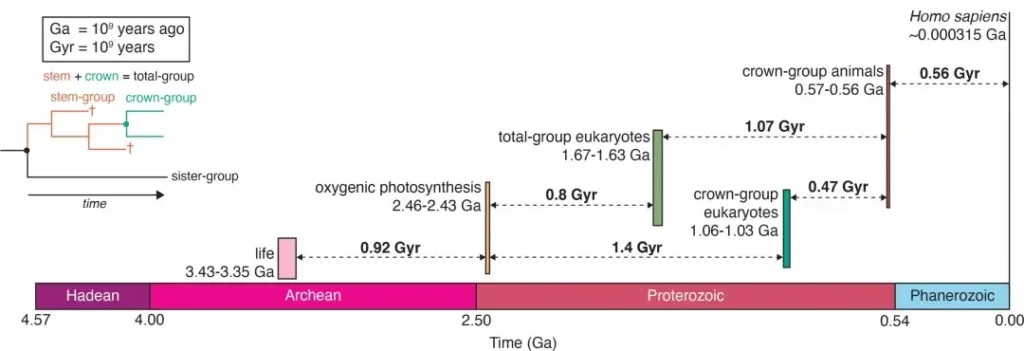 Ao cruzar as idades desses genes com fósseis e com o contexto filogenético mais amplo, eles puderam ordenar a aquisição dos sistemas de vida celular em tempo absoluto.